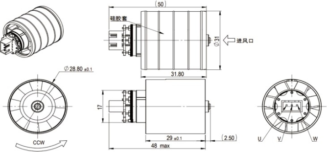 采用无刷换向结构,无碳刷磨损,使用寿命长达10000-50000小时,故障率低,维护成本少