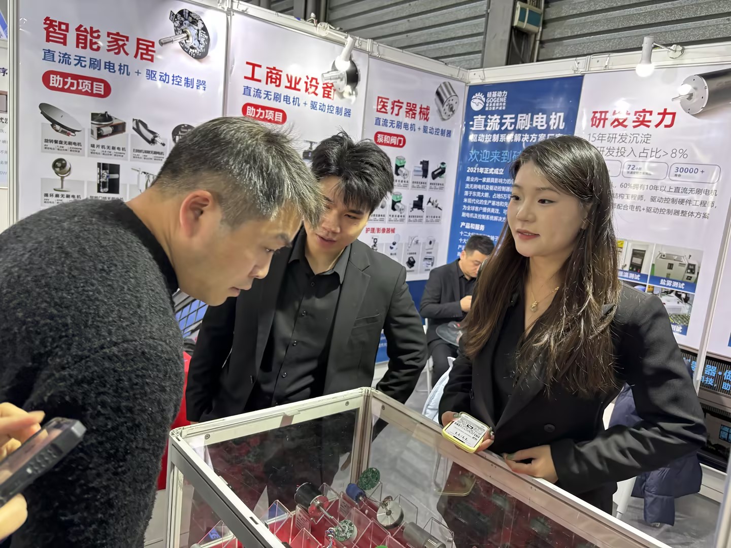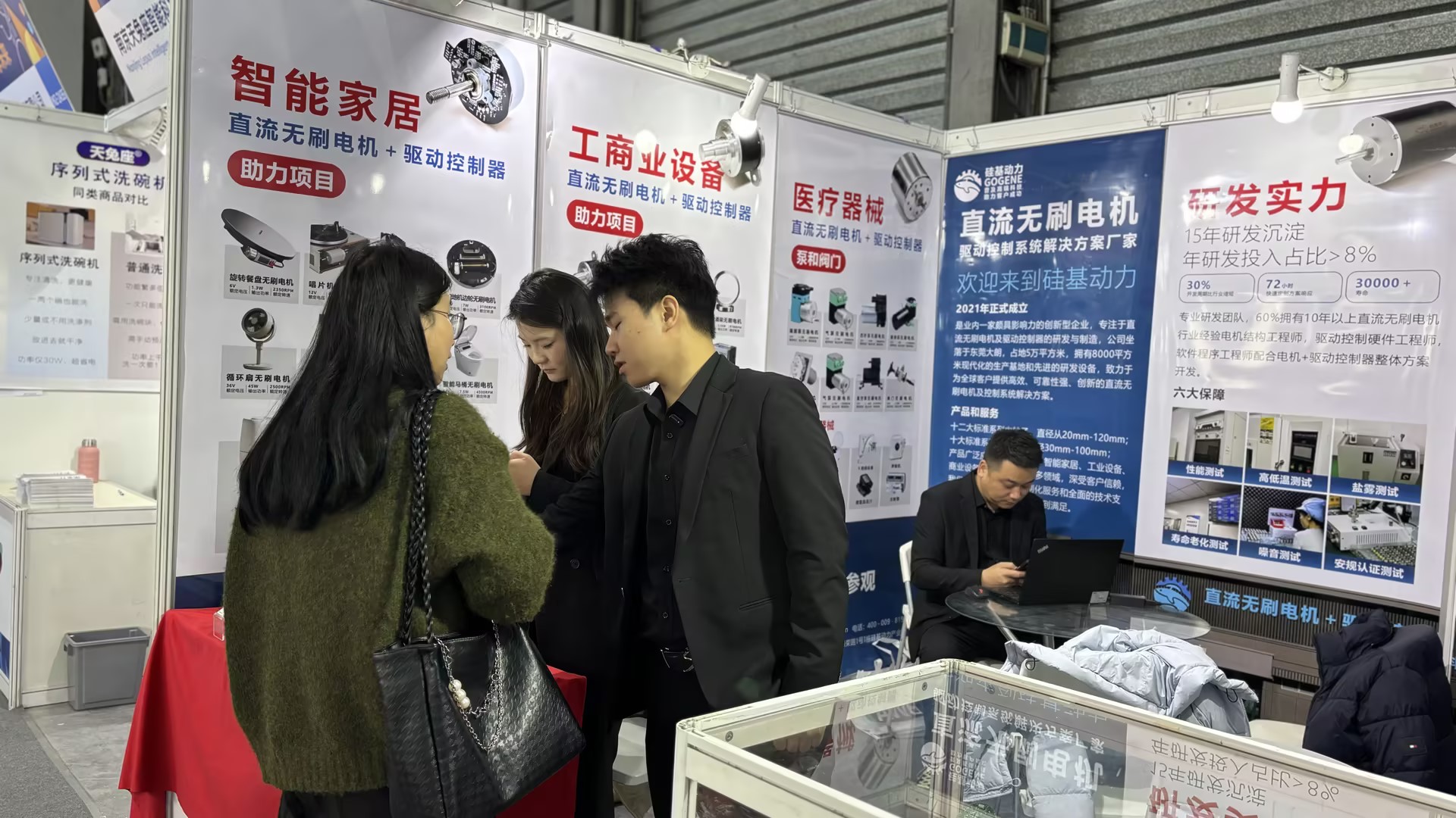 据统计首日累计接待 80余家 深度交流客户,其中 25% 为海外客商。涵盖智能家居、个护及医疗器械等高端领域。其中BM5665最受欢迎之一,是我们的明星产品,主要用在智能割草机,泵阀门、汽车电动门等应用场景。BM2430,主要应用在旋转餐盘、唱片机、智能门锁等;BS6040 主要应用在炒菜机、迷你洗衣机、智能电动轮椅等;